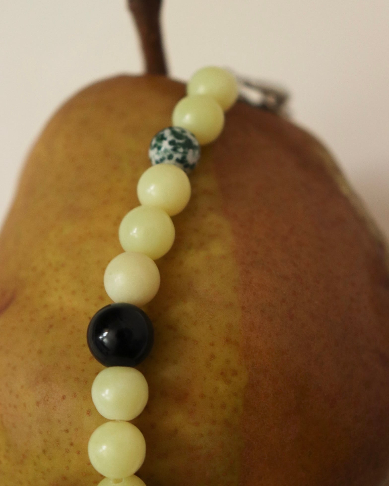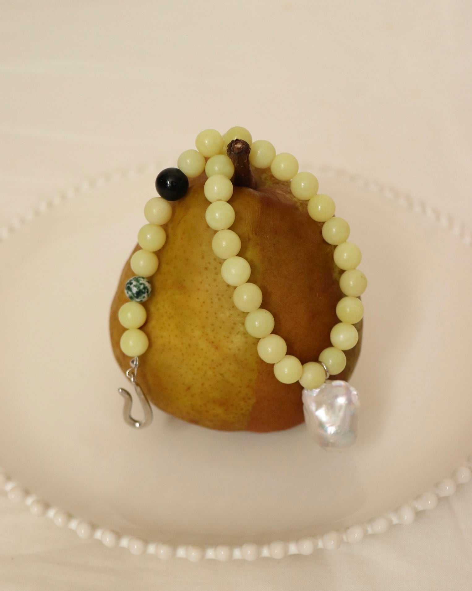 レモンストーン、淡水パール、真鍮、オニキス、ソーシュライト